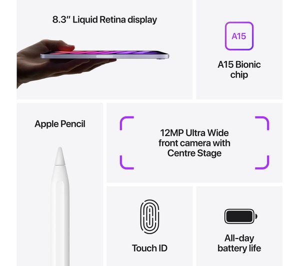Technical specifications for APPLE 8.3″ iPad mini Cellular (2021) – 64 GB, Starlight