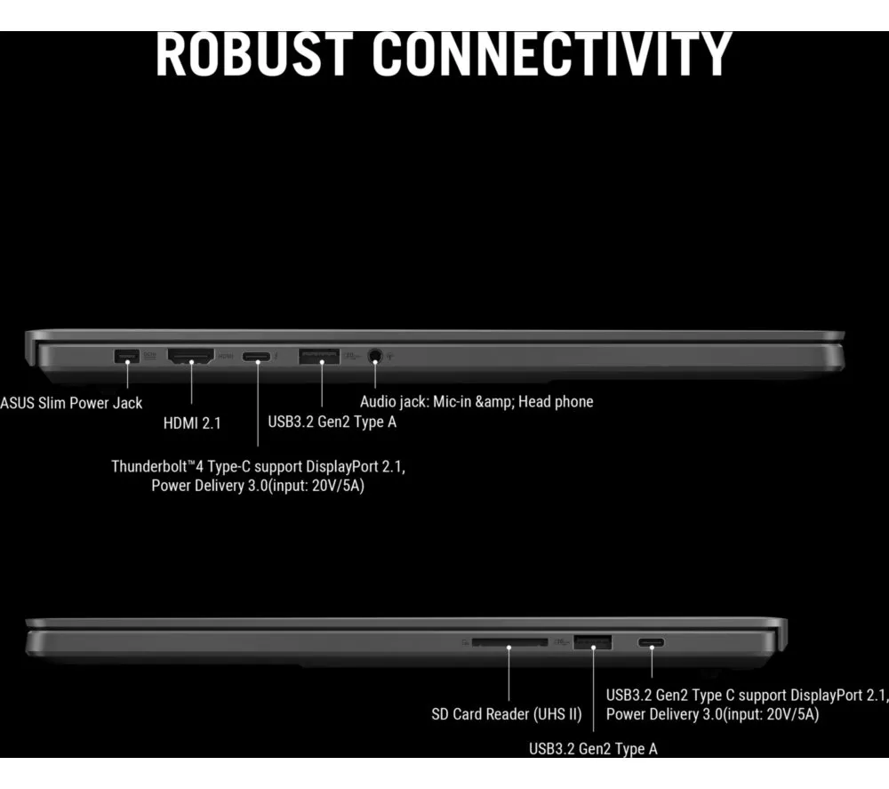 Technical specifications for ASUS ROG Zephyrus G16 16″ Gaming Laptop – Intel® Core™ Ultra 9, RTX 5080, 2 TB SSD