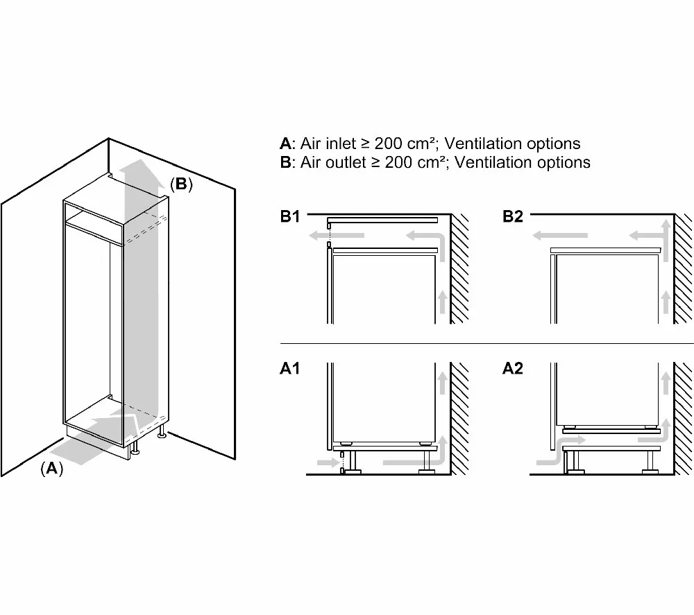 Technical specifications for BOSCH Series 4 GIN81VEE0G Integrated Tall Freezer – Fixed Hinge
