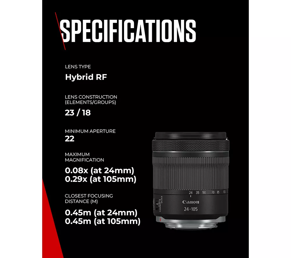 Technical specifications for CANON RF 24-105 mm f/4-7.1 IS STM Standard Zoom Lens