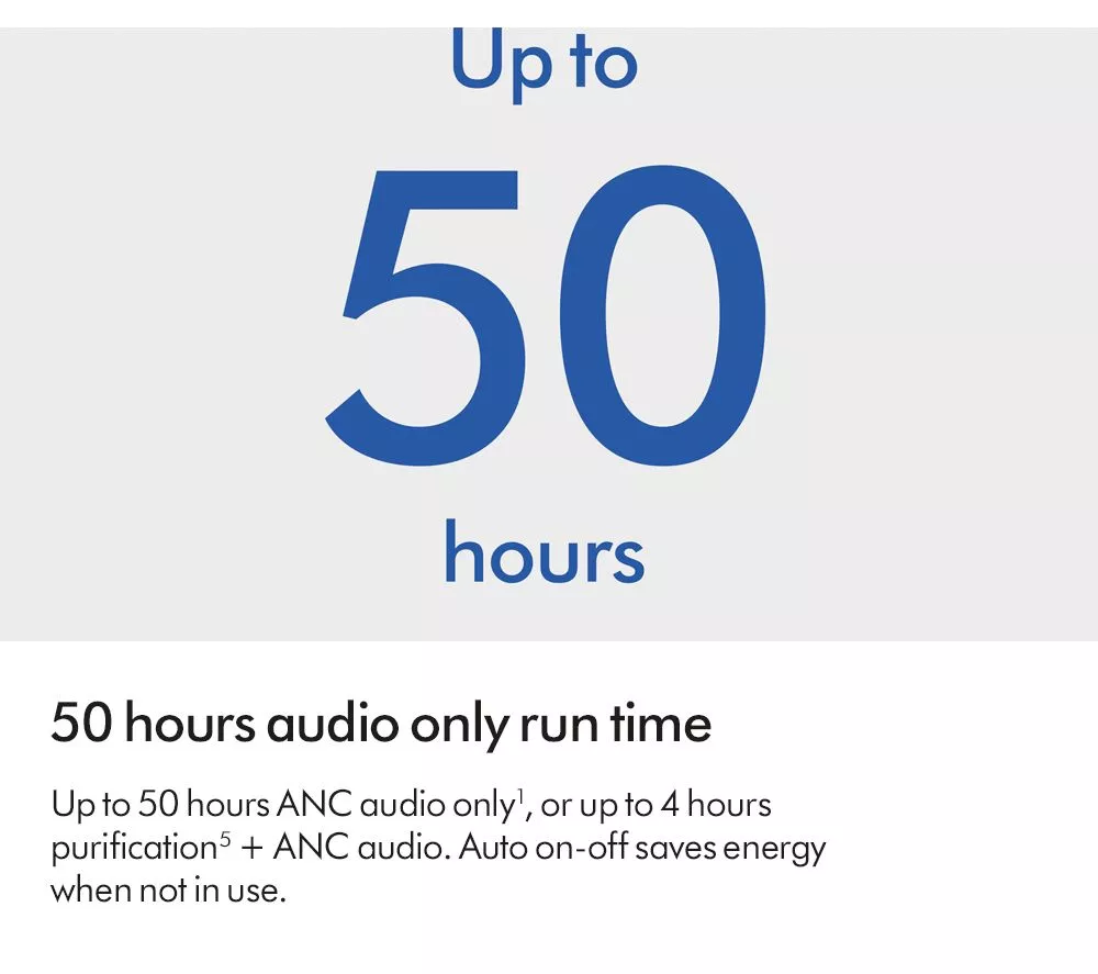 – With ANC & Air Purification: Up to 4 hours