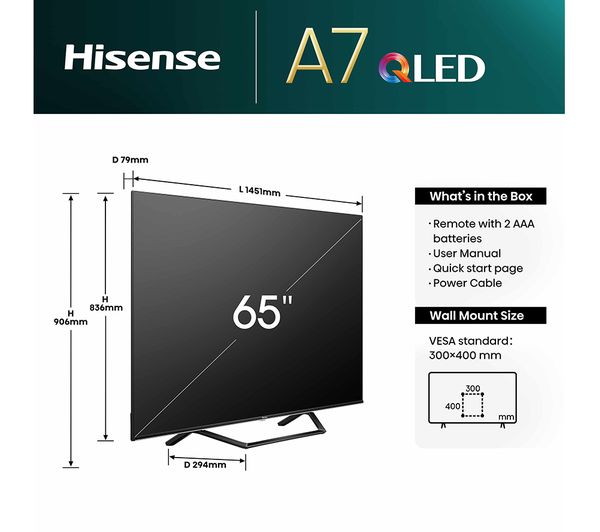 Tags: HISENSE, HISENSE 65A7NQTUK, HISENSE 65A7NQTUK 65 Smart 4K Ultra HD HDR QLED TV with Amazon Alexa