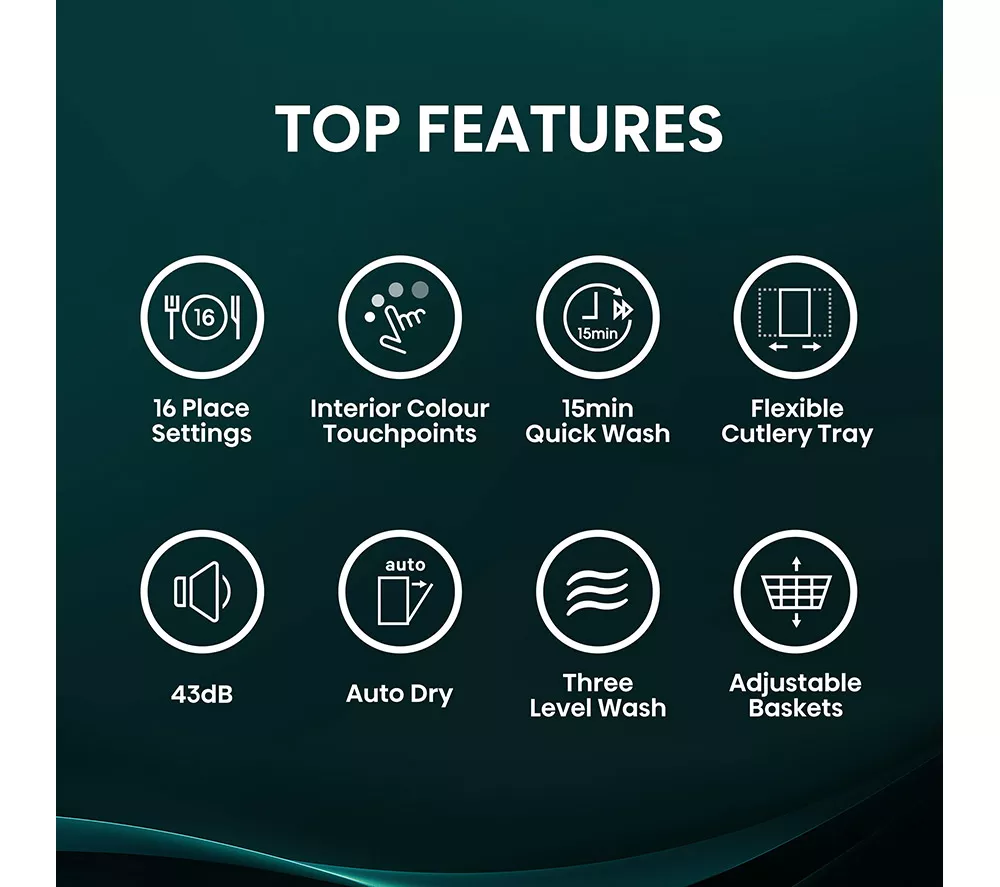 • Ideal for larger households (16 place settings)