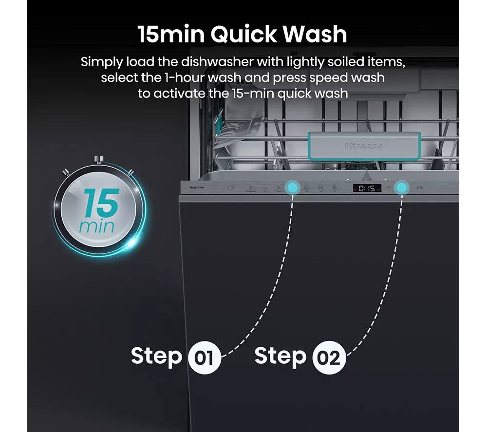 – Hisense HV16CUK Full-size Fully Integrated Dishwasher