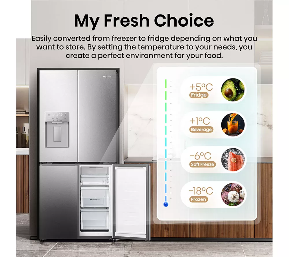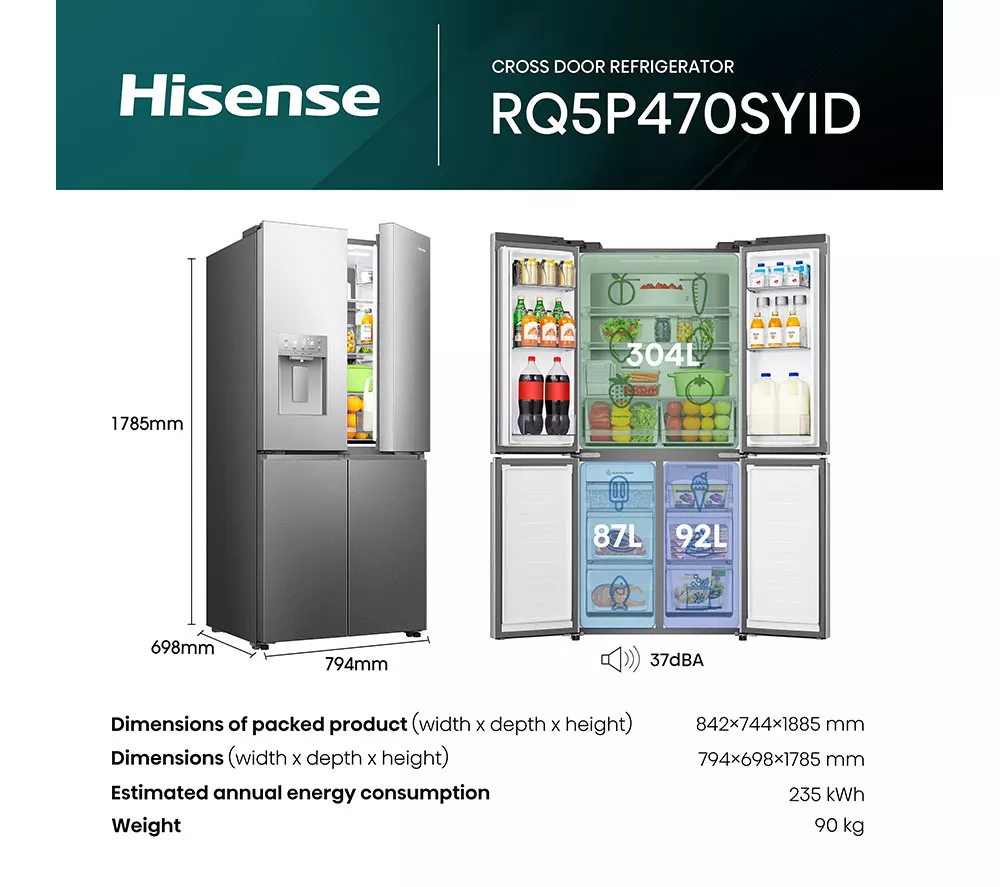 – Hisense PureFlat Slim RQ5P470SYID Smart Fridge Freezer