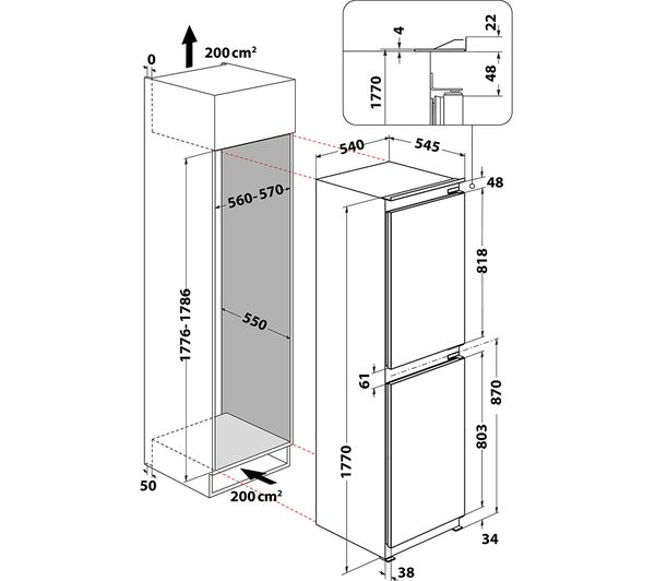 Technical specifications for HOTPOINT Low Frost HMCB 50502 UK Integrated 50/50 Fridge Freezer – Sliding Hinge