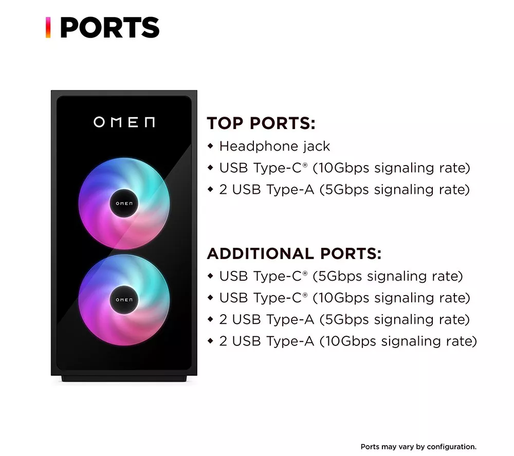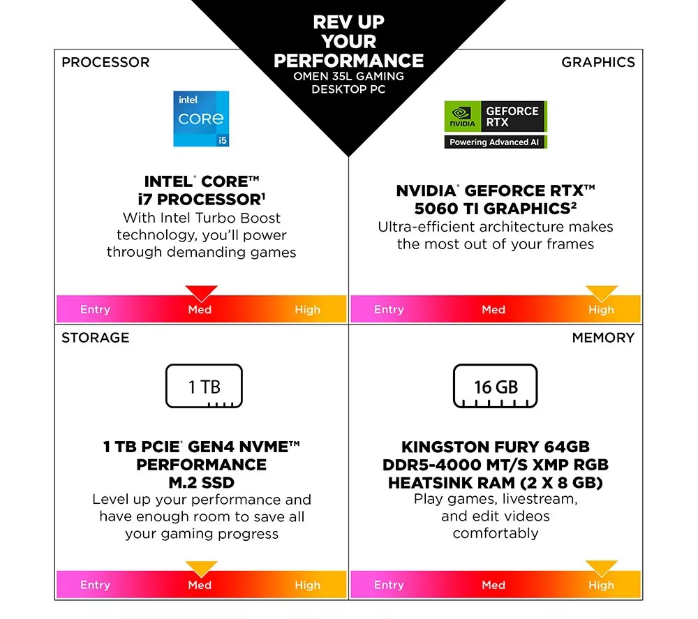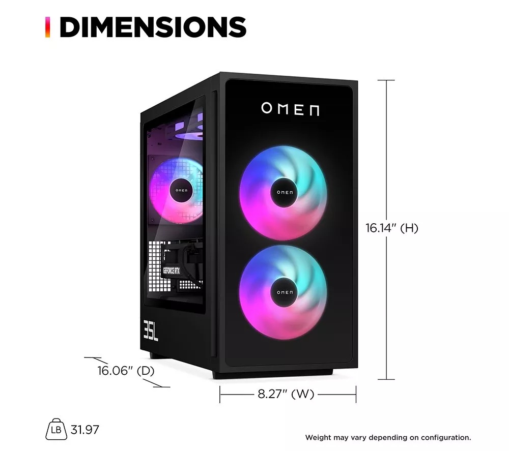 Technical specifications for HP OMEN 35L Gaming PC – Intel® Core™ i5, RTX 5060 Ti, 1 TB SSD