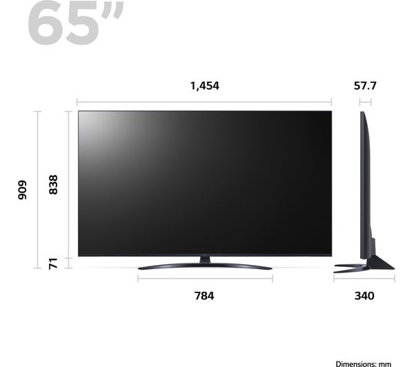 – TV with stand: 909 x 1454 x 340 mm (H x W x D)