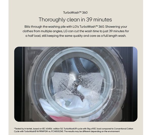 Technical specifications for LGE EZDispense F4Y913BCTA1 WiFi-enabled 13 kg 1400 Spin Washing Machine – Black