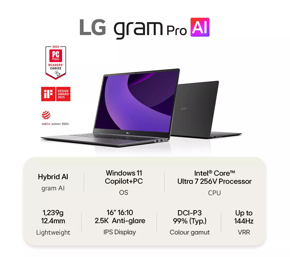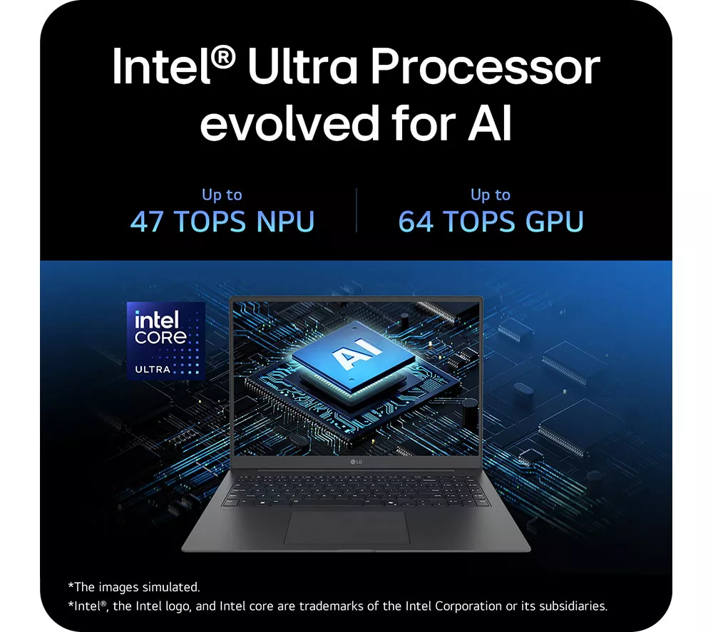 Technical specifications for LG gram Pro 16Z90TS-G.AU79A1 16″ Laptop, Copilot+ PC – Intel® Core™ Ultra 7, 1 TB SSD, Grey