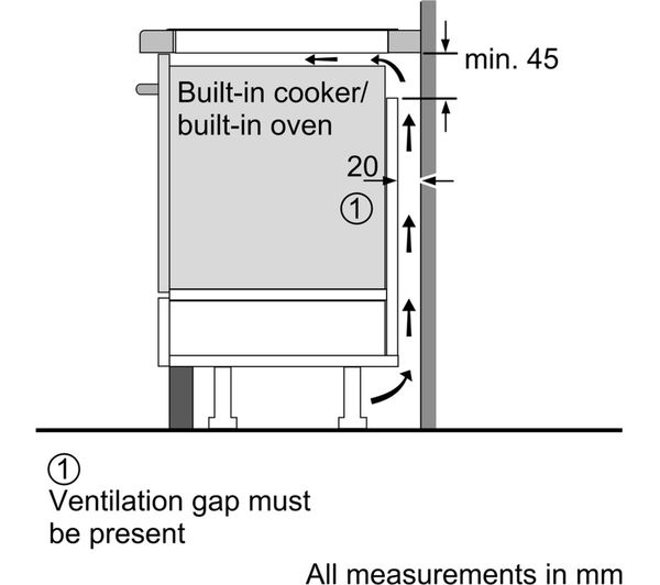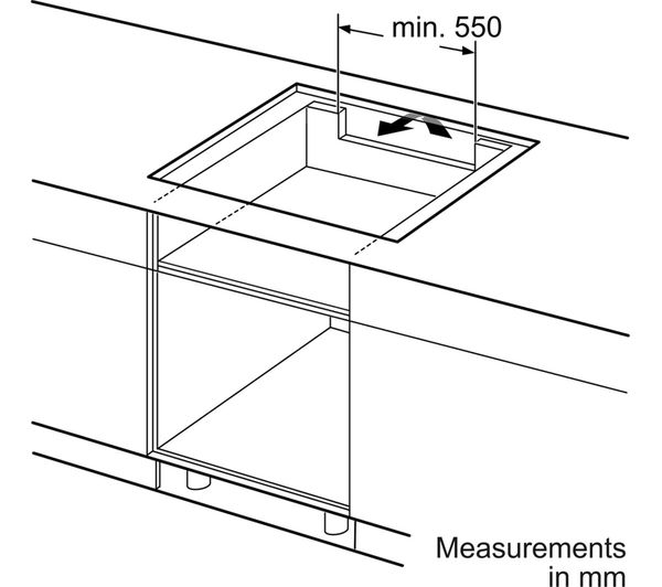 Minimum distance required / Minimum clearance above hob