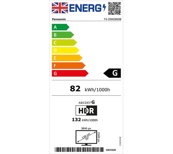Technical specifications for PANASONIC TX-55MZ800B 55″ Smart 4K Ultra HD HDR OLED TV with Google Assistant