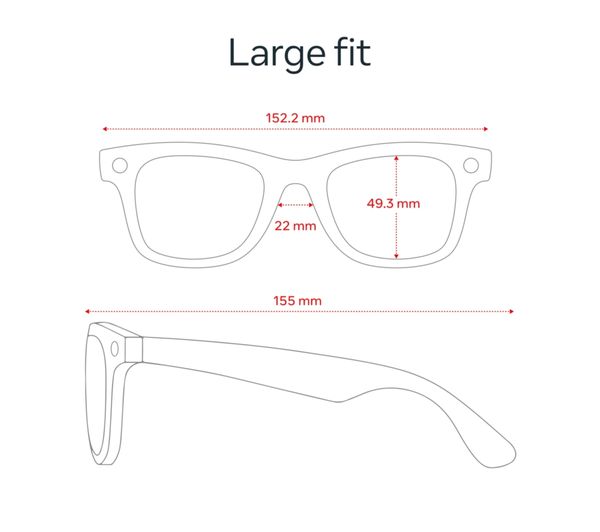 Technical specifications for RAY-BAN Meta Wayfarer (Large) Smart Glasses – Matte Black, Polarised Gradient Graphite