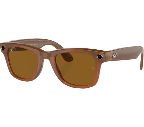 RAY-BAN Meta Wayfarer (Standard) Smart Glasses – Shiny Caramel Transparent, Polarised Brown