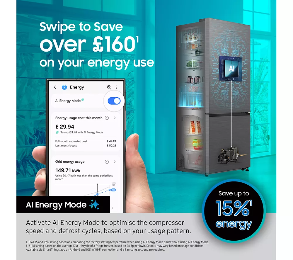 – Samsung Series 8 SpaceMax RB38C607AB1/EU 70/30 Smart Fridge Freezer