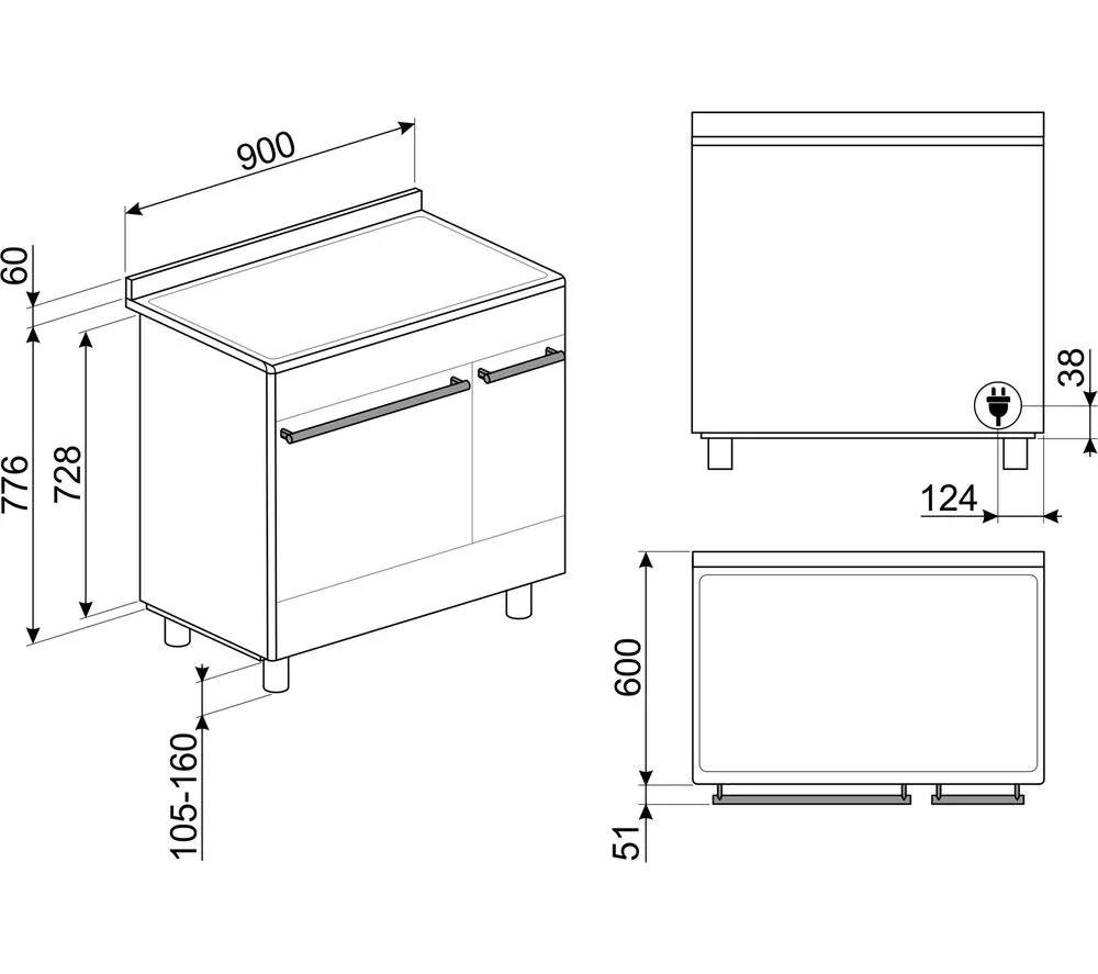 Technical specifications for SMEG Concert SUK92CMX9 90 cm Electric Ceramic Range Cooker – Stainless Steel