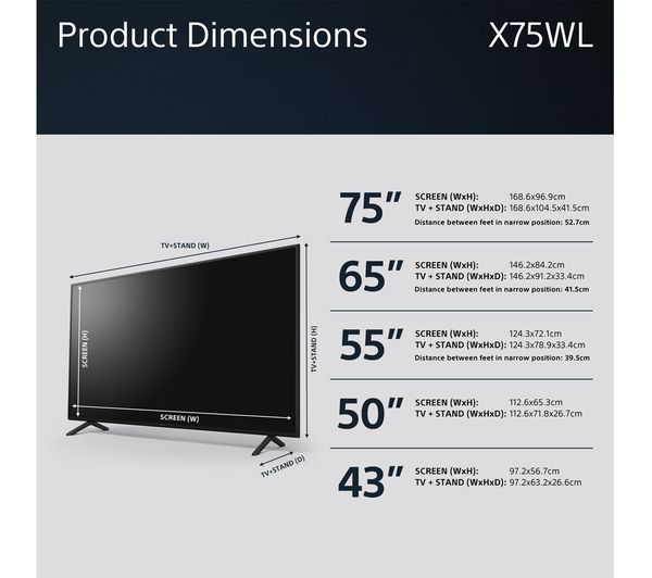 Technical specifications for SONY BRAVIA KD-65X75WLU 65″ Smart 4K Ultra HD HDR LED TV with Google TV & Assistant