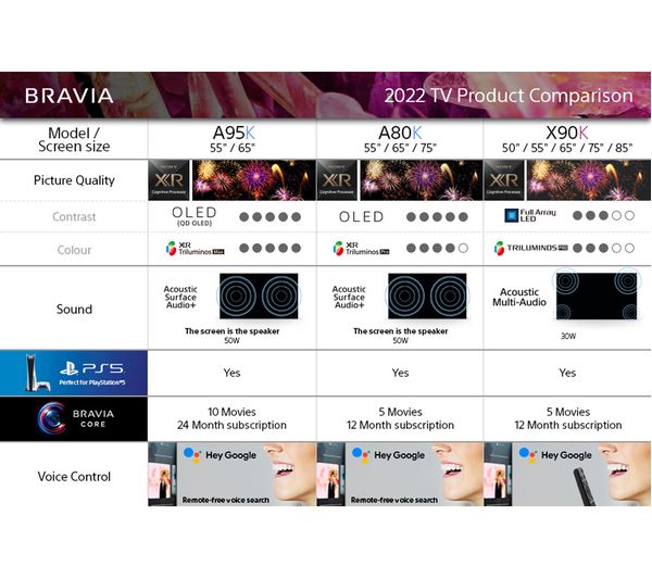 – Streaming: Apple TV, Prime Video 4K, Britbox, BT Sport, Disney+, Google Play, Netflix 4K, NOW TV