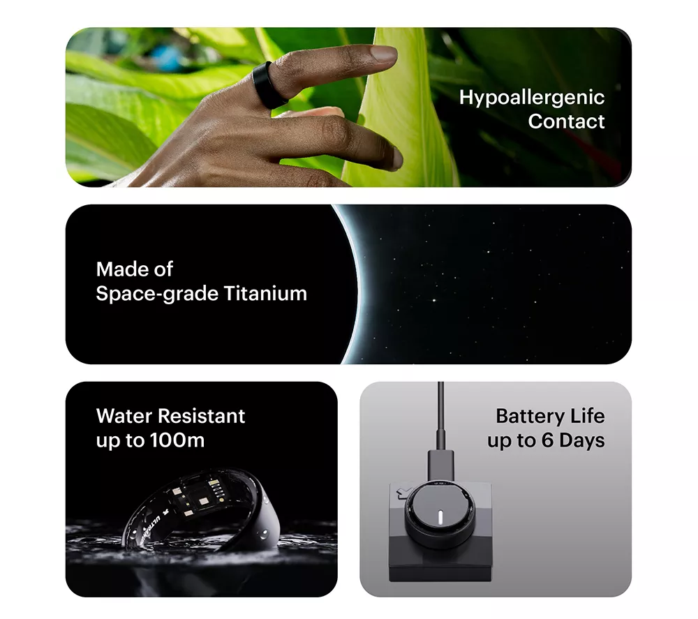 Technical specifications for ULTRAHUMAN Ring Air – Raw Titanium, Size 7