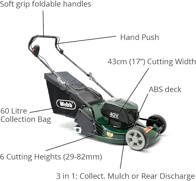 – Webb WERR17LIP Cordless Rotary Lawn Mower